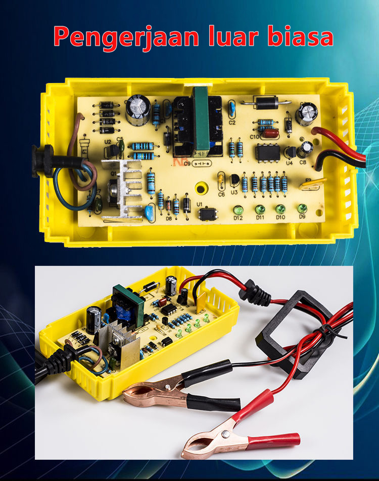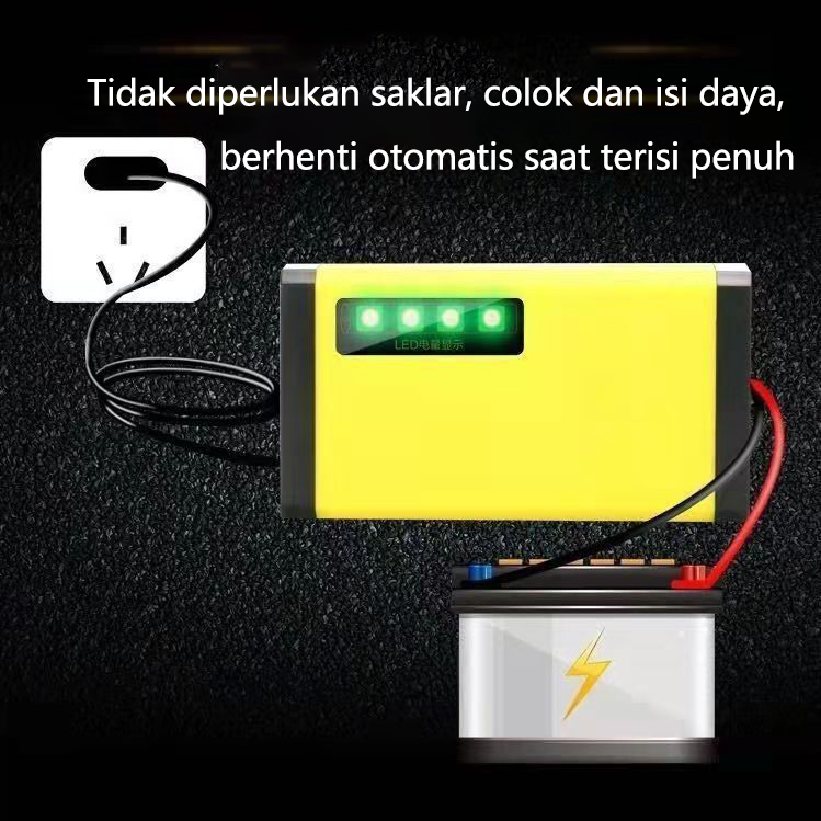 Charger portable untuk mengisi baterai sepeda motor dan mobil 12V/3A. Dengan ini Anda dapat mengisi baterai mobil atau motor dimanapun Anda memiliki sumber listrik melalui plug EU.