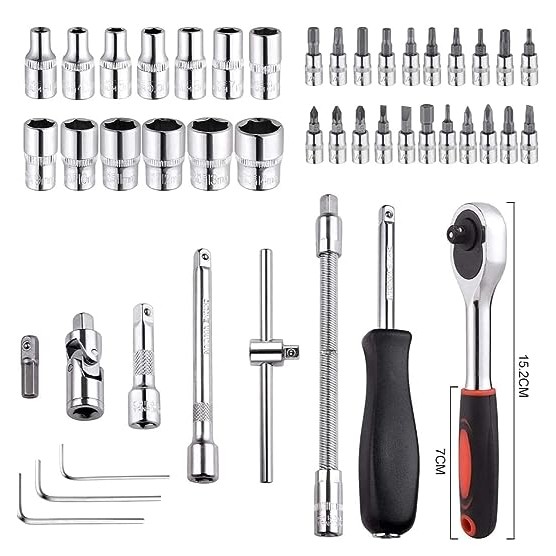 Kunci Sok 46pcs Socket Tool adalah kunci set bongkar pasang yang dapat membantu anda untuk mengendurkan, hingga mengencangkan mur dan baut yang keras atau sulit diakses.