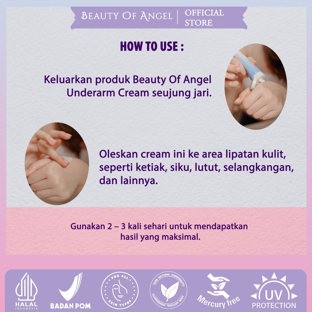 Gunakan Underarm Cream BOA cukup seujung jari oleskan ke ketiak dan area lipatan kulit, 2-3 kali sehari