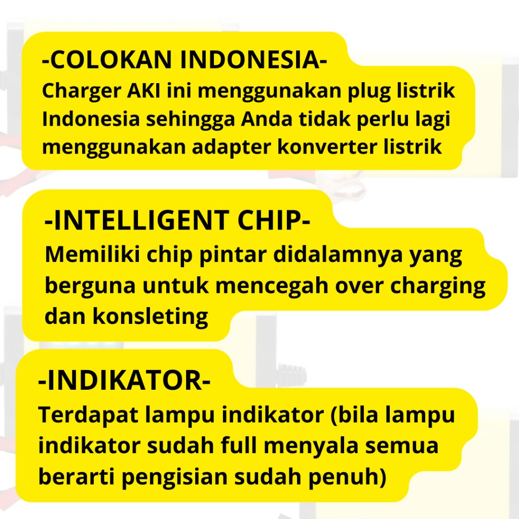 – Tidak bisa untuk AKI yang sudah soak ( tidak bisa menympan setrum )
