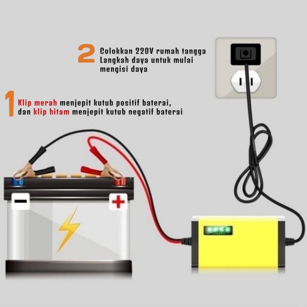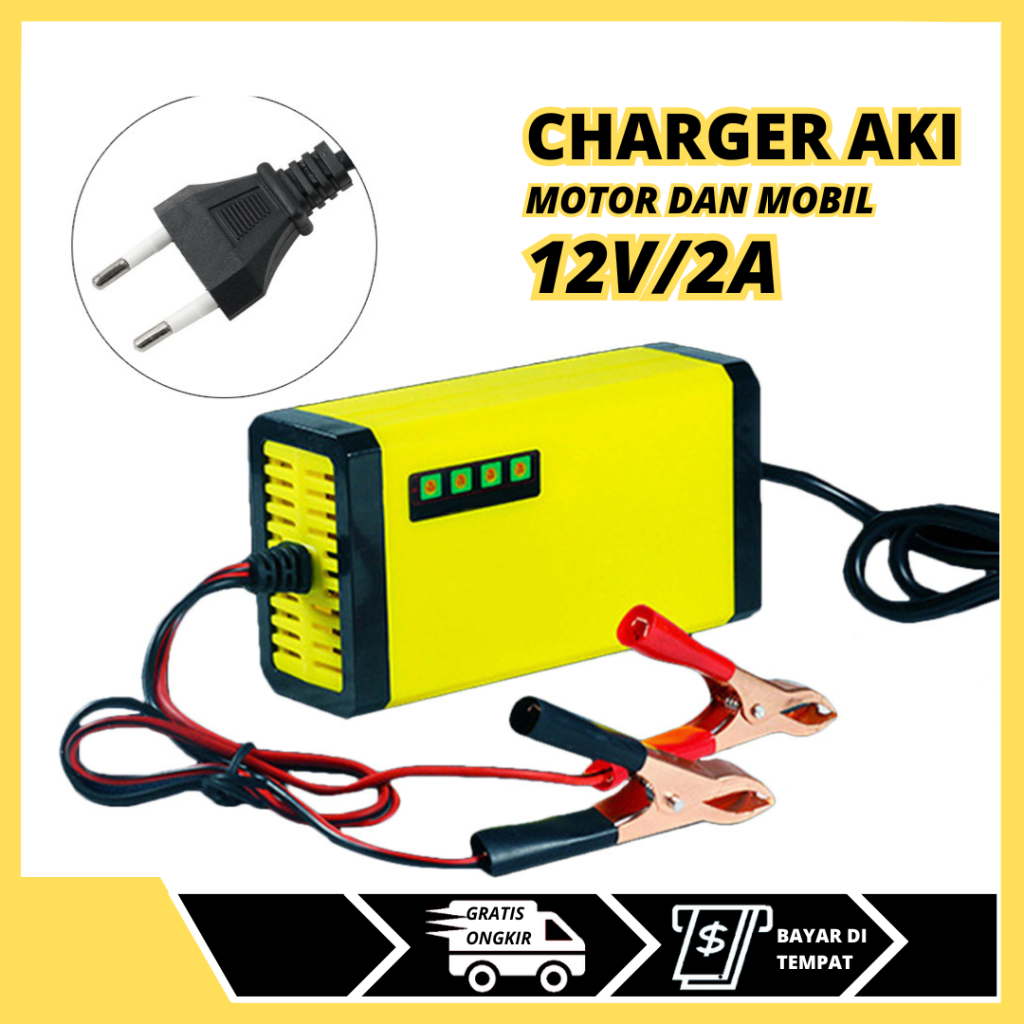 CAS CASAN AKI MOTOR MOBIL 12V 2A 12V/12A PORTABLE OTOMATIS CHARGER ACCU CARGER AKI PORTABLE