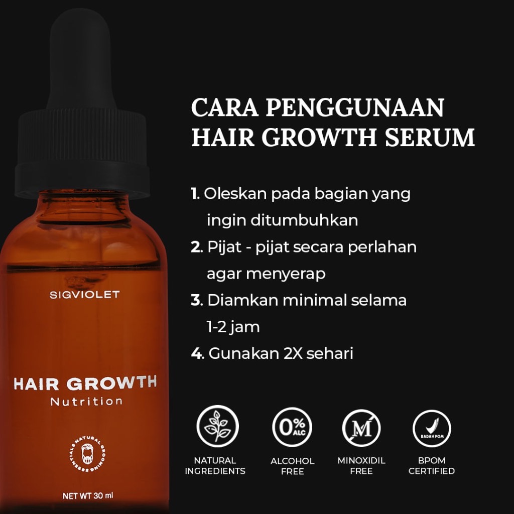 Hair Growth dari Sigviolet merupakan perangsang pertumbuhan rambut, brewok, kumis, alis dan jambang yang terbuat dari bahan alami serta dapat berfungsi untuk menutrisi, memperkuat dan menjaga kesehatan struktur rambut.
